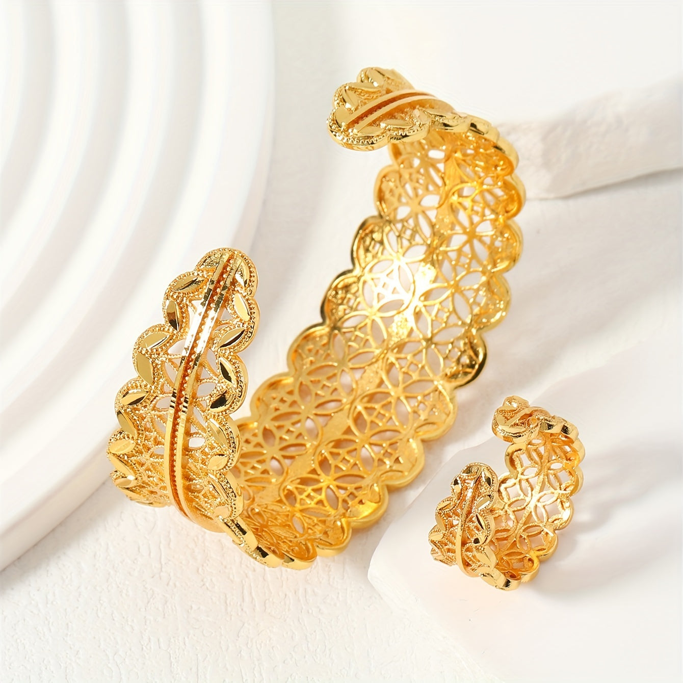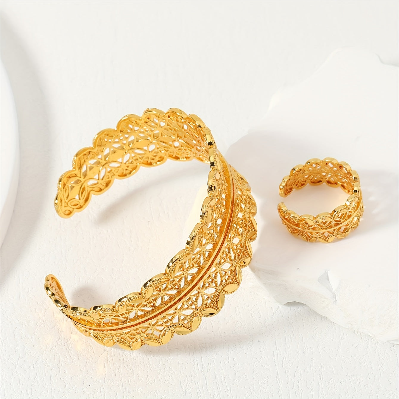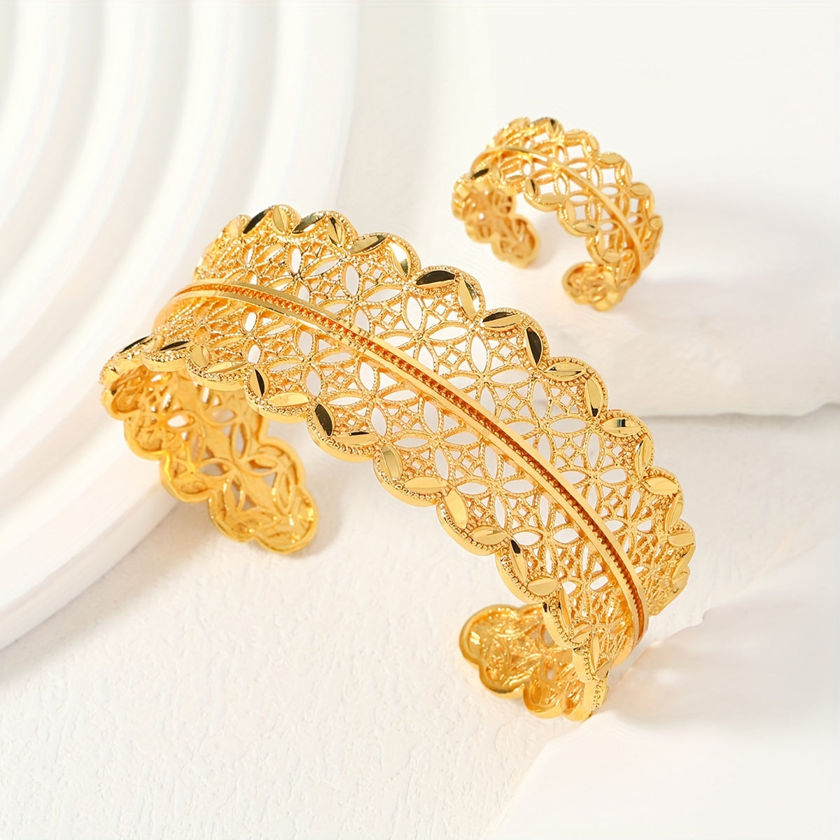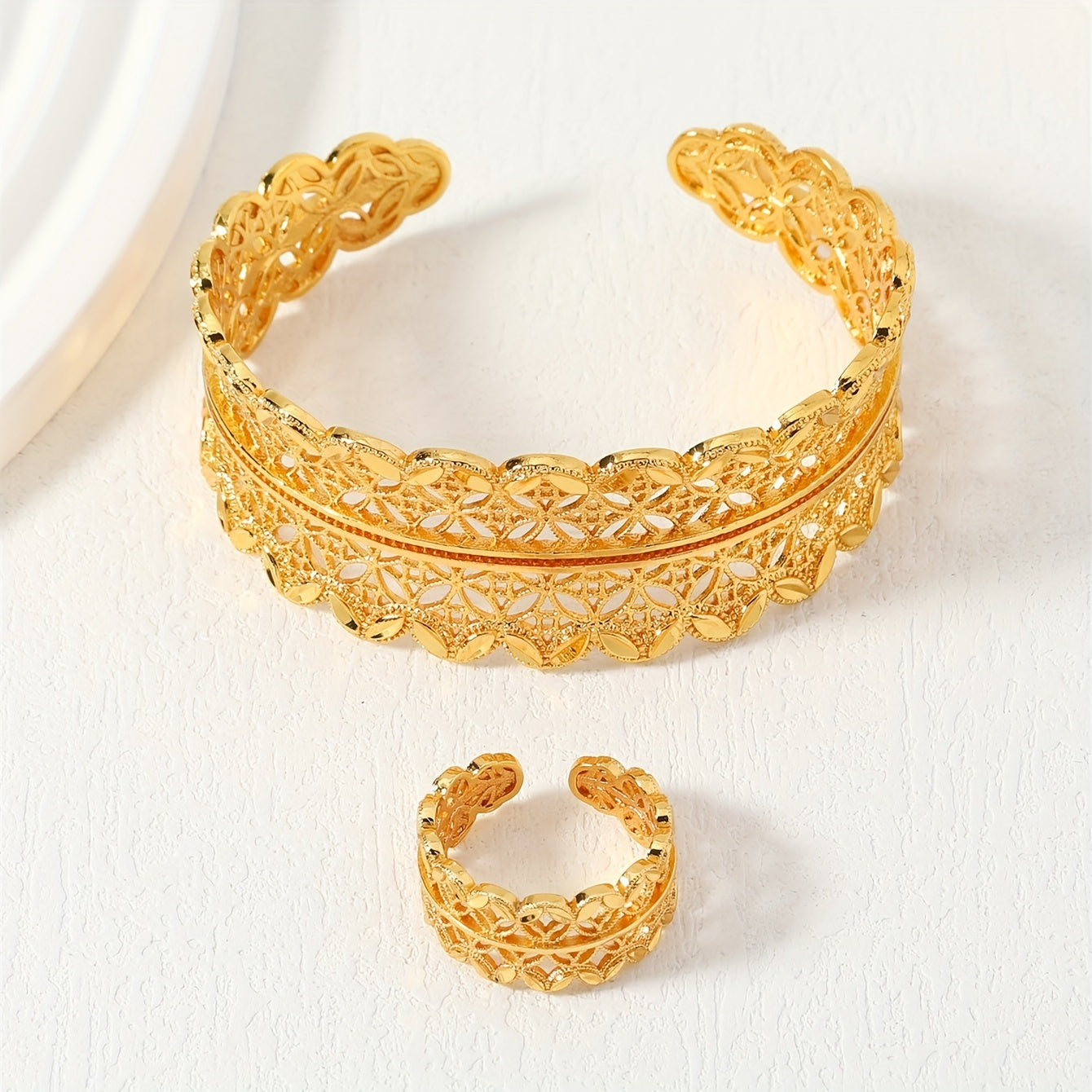 1pc Retro & Luxury Wide Cuff Bracelet And 1pc Ring Set