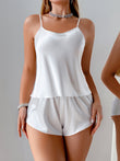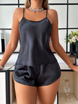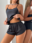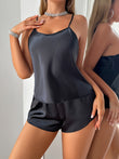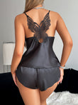 2pcs Women's Black Lace Butterfly Back & Round Neck Pajama Set